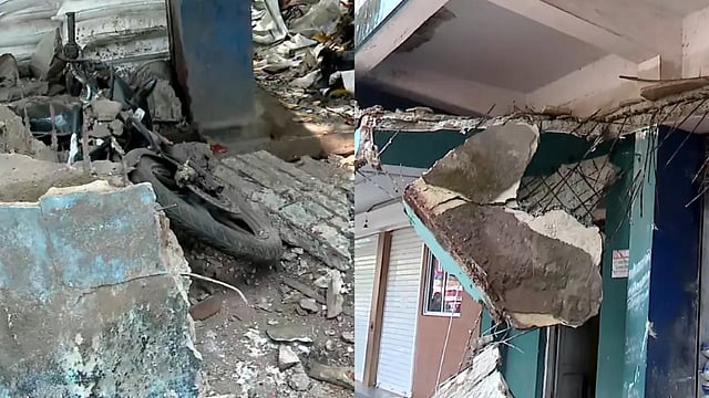 അര നൂറ്റാണ്ടിലേറെ പഴക്കമുള്ള മൂന്നുനില കെട്ടിടത്തിലാണ് അപകടമുണ്ടാവുന്നത്. മുൻപ് പാസ്പോർട്ട് ഓഫിസ് പ്രവർത്തിച്ചിരുന്ന കെട്ടിടമാണിത്. വ്യാപാര സ്ഥാപനങ്ങൾ പ്രവർത്തിക്കുന്ന കെട്ടിടം. ഇതിന്റെ പല ഭാഗത്തും കോൺക്രീറ്റ് അടർന്നു തുടങ്ങിയതാണ്.