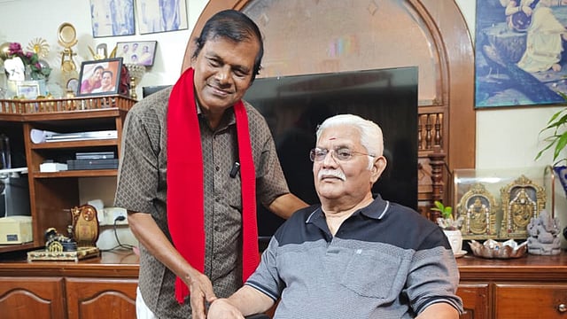പൂജപ്പുര രാധാകൃഷ്ണൻ ജഗതി ശ്രീകുമാറിനെ സന്ദർശിച്ചപ്പോൾ.