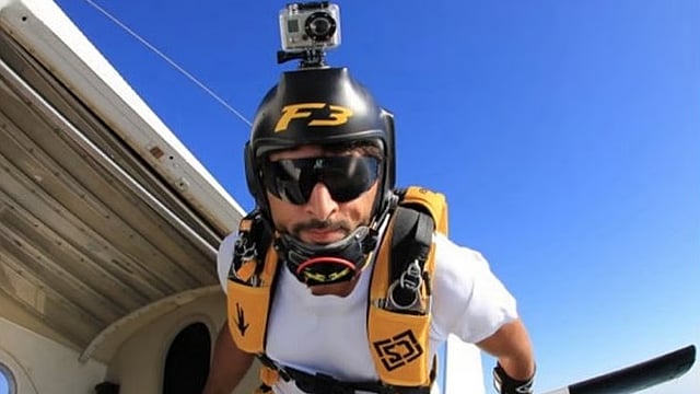 ഷെയ്ഖ് ഹംദാൻ സ്കൈ ഡൈവിങ്ങിനിടെ.