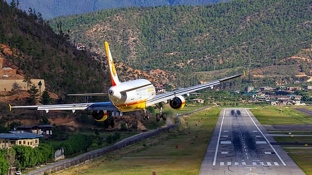 ഭൂട്ടാനിലെ വിമാനത്താവളത്തിൽ ലാൻഡ് ചെയ്യുന്ന വിമാനം.