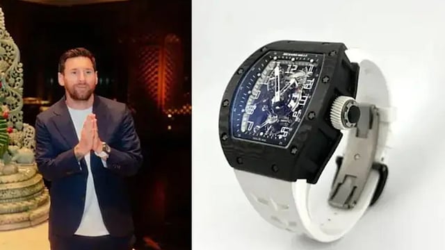 ന്യൂഡൽഹി: ഫുട്ബോൾ ഇതിഹാസം ലയണൽ മെസിയുടെ നാല് ദിവസം നീണ്ട ഇന്ത്യ സന്ദർശനത്തിനിടെ മെസിക്ക് ലഭിച്ച അപൂർവ ആഡംബര വാച്ചാണ് ശ്രദ്ധ നേടുന്നത്. കൊൽക്കത്ത, ഹൈദരാബാദ്, മുംബൈ, ഡൽഹി എന്നി പ്രമുഖ നഗരങ്ങളാണ് മെസി സന്ദർശിച്ചത്. ഇതിനിടെ പല പ്രമുഖരുമായി മെസി അടുത്തിടപ്പെടുകയും ചെയ്തിരുന്നു. ഇതിനിടെ പ്രമുഖ വ്യവസായ പ്രമുഖൻ മെസിക്ക് സമ്മാനിച്ചതാണ് ഈ സവിശേഷ വാച്ച്. 10.9 കോടി വിലമതിക്കുന്ന വാച്ചാണ് ഇതെന്നാണ് വിവരം. റിച്ചാർഡ് മില്ലെ RM 003-V2 GMT ടൂർബില്ലൺ ഏഷ്യ എഡിഷനിൽ ഉൾപ്പെട്ടതാണ് ഈ ഘടികാരം.