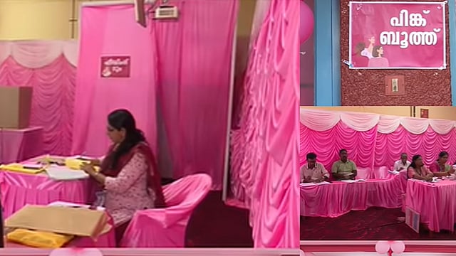 തദ്ദേശ തെരഞ്ഞെടുപ്പിൽ വോട്ടു ചെയ്യാനെത്തിയ സ്ത്രീകൾക്കായി പിങ്ക് ബൂത്ത്