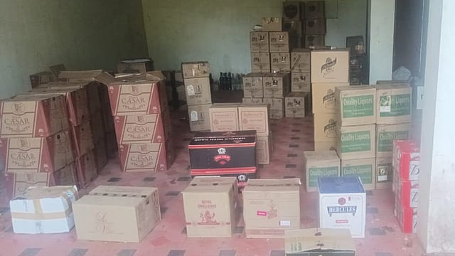 വിവിധ ഇനത്തില് പെട്ട ഇന്ത്യൻ നിർമിത വിദേശ മദ്യം 140 ഓളം കാർഡ്ബോർഡ് പെട്ടികളിലായി 1659 കുപ്പികളിൽ 1500 ഓളം ലിറ്ററാണ് കണ്ടെടുത്തത്.