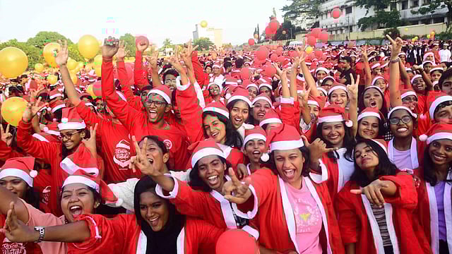 കോട്ടയം: ക്രിസ്മസിന്റ വരവറിയിച്ചും ആഘോഷങ്ങൾക്ക് തുടക്കം കുറിച്ചും പാപ്പാമാർ നഗരം ചുവപ്പിച്ചു. കോട്ടയത്ത് നടന്ന ബോൺ നതാലെ ക്രിസ്മസ് പാപ്പാ വിളംബരയാത്രയിൽ ഒന്നും രണ്ടുമല്ല മൂവായിരത്തോളം ക്രിസ്മസ് പാപ്പാമാരാണ് റാലിയിൽ പങ്കുചേർന്ന് വിസ്മയക്കാഴ്ചയൊരുക്കിയത്.