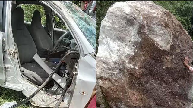 മുകളിൽ നിന്നുരുണ്ടുവന്ന പാറ മൺതിട്ടയിൽ ഇടിച്ച് രണ്ടായി പിളർന്നിരുന്നു. ഇതിൽ ഒരു ഭാഗമാണ് കാറിന്റെ ഡ്രൈവിംഗ് ഭാഗത്തിടിച്ചത്. ഇടിയുടെ ആഘാതത്തിൽ വാഹനം റോഡിൽ നിന്ന് തെന്നിമാറി പുഴയുടെ സമീപം മൺതിട്ടയിൽ തങ്ങിനിന്നു. തലനാരിഴയ്ക്കാണ് വലിയ അപകടം ഒഴിവായത്.
