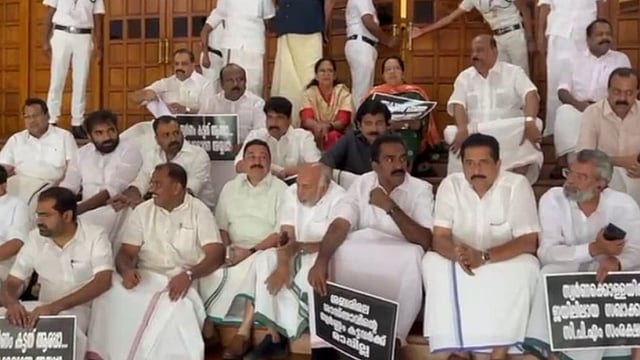 നിയമസഭ സമ്മേളനത്തിന് തുടക്കം; കവാടത്തിൽ പ്രതിപക്ഷത്തിന്റെ സത്യാഗ്രഹ സമരം