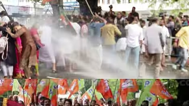 തിരുവനന്തപുരം: തലസ്ഥാനത്തെ വെള്ളക്കെട്ടിന് പരിഹാരം കാണാത്ത മേയർ ആര്യാ രാജേന്ദ്രൻ രാജിവെയ്ക്കണമെന്നാവശ്യപ്പെട്ട് ബിജപി നഗരസഭയിലേക്ക് നടത്തിയ മാർച്ചിൽ സംഘർഷം. നഗരസഭാ ഓഫീസിനകത്തേക്ക് കടന്ന ബിജെപി പ്രവർത്തകരും പൊലീസും തമ്മിൽ ഉന്തും തള്ളും ഉണ്ടായി. ബാരിക്കോട് തകർക്കാൻ ശ്രമിച്ച പ്രവർത്തകർക്ക് നേരെ രണ്ടുതവണ ജലപീരങ്കി പ്രയോഗിച്ചു.
