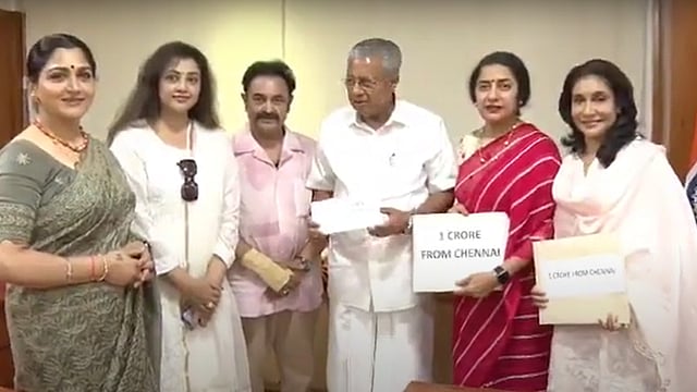 തിരുവനന്തപുരം: ചെന്നൈയിൽ നിന്നുള്ള ചലച്ചിത്ര പ്രവർത്തകരുടെ കൂട്ടായ്മ ഒരു കോടി രൂപ മുഖ്യമന്ത്രിയുടെ ദുരിതാശ്വാസ നിധിയിലേക്ക് സംഭാവന നൽകി. രാജ്കുമാർ സേതുപതി( കേരള സ്ട്രൈക്കേഴ്സ് ഉടമ) സുഹാസിനി മണി രത്നം ശ്രീപ്രിയ,ഖുശ്ബു സുന്ദർ,മീന സാഗർ, ലിസി ലക്ഷ്മി എന്നിവരാണ് മുഖ്യമന്ത്രിക്ക് ചെക്ക് കൈമാറിയത്.