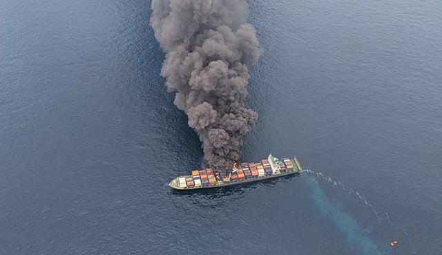 അറബിക്കടലിൽ തീപിടിച്ച സിംഗപ്പൂർ ചരക്ക് കപ്പലിൽ അഗ്നിരക്ഷാ പ്രവർത്തനങ്ങൾക്ക് തുടക്കം