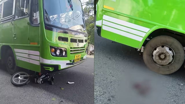കോട്ടയം: മനോരമ ജംഗ്ഷനില് അമിത വേഗതയിൽ എത്തിയ സ്വകാര്യ ബസ് ബൈക്ക് യാത്രക്കാരനെ ഇടിച്ചിട്ടു. കോട്ടയം - ഏറ്റുമാനൂർ റൂട്ടിൽ സർവീസ് നടത്തുന്ന പുള്ളത്തിൽ എന്ന ബസ് വടവാതൂർ സ്വദേശി ജോയിയെ ഇടിച്ചിടുകയായിരുന്നു. അപകടത്തിൽ ഗുരുതരമായി പരിക്കേറ്റ ജോയിയെ കോട്ടയം മെഡിക്കൽ കോളേജ് ആശുപത്രിയിൽ പ്രവേശിപ്പിച്ചു.
