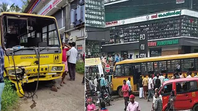 തിരുവമ്പാടി ഓമശേരി റോഡിൽ ഭാരത് പെട്രോൾ പമ്പിനു സമീപമാണ് സംഭവം. അമ്പലപ്പാറ റോഡിൽ നിന്ന് ഇറക്കം ഇറങ്ങിവരികയായിരുന്ന സ്കൂൾബസ് നിയന്ത്രണംവിട്ട് മുൻവശത്തെ മതിലിൽ ഇടിക്കുകയായിരുന്നു. അപകടം നടന്നയുടൻ നാട്ടുകാർ ഓടിക്കൂടി രക്ഷാപ്രവർത്തനം നടത്തി.
