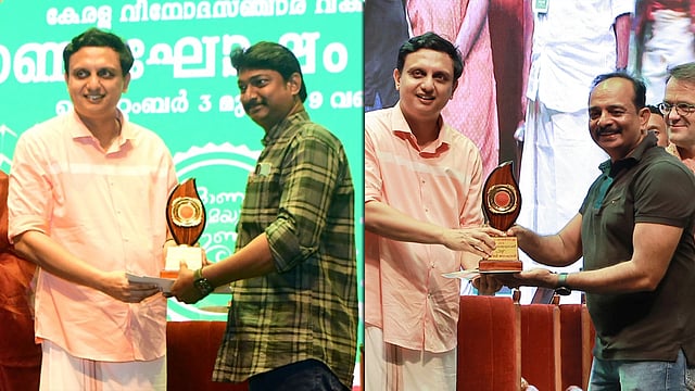 മികച്ച റിപ്പോർട്ടർ വിഭാഗത്തിൽ മെട്രൊ വാർത്ത തിരുവനന്തപുരം ബ്യൂറോ ചീഫ് ശരത് ഉമയനല്ലൂർ ടൂറിസം മന്ത്രി പി.എ. മുഹമ്മദ് റിയാസിൽ നിന്ന് അവാർഡ് ഏറ്റുവാങ്ങുന്നു | മികച്ച ഫോട്ടോഗ്രാഫർ വിഭാഗത്തിൽ മെട്രൊ വാർത്ത ചീഫ് ഫോട്ടോഗ്രാഫർ കെ.ബി. ജയചന്ദ്രൻ അവാർഡ് ഏറ്റുവാങ്ങുന്നു.