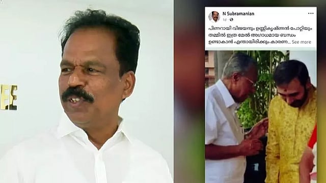 പിണറായി വിജയനും ഉണ്ണിക്കൃഷ്ണൻ പോറ്റിയും തമ്മിൽ ഇത്രമേൽ അഗാധമായ ബന്ധം ഉണ്ടാകാൻ എന്തായിരിക്കും കാരണമെന്ന കാപ്ഷനോടെയാണ് ഇരുവരും ഒരുമിച്ചു നിൽക്കുന്ന ഫോട്ടോകൾ എൻ. സുബ്രമണ്യൻ പോസ്റ്റിട്ടത്.
