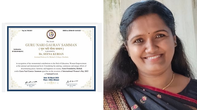 ചേർത്തല: ഹരിയാന സർക്കാരിനു കീഴിൽ പ്രവർത്തിക്കുന്ന ഗുരു ഫൗണ്ടേഷൻ സാഹിത്യ സാംസ്കാരിക സാമൂഹിക മേഖലകളിൽ മികവ് തെളിയിച്ച വനിതകൾക്കേർപ്പെടുത്തിയ "നാരി ഗൗരവ്വ് പുരസ്കാർ - 2023 " ഡോ. സീന കുര്യന് ലഭിച്ചു.