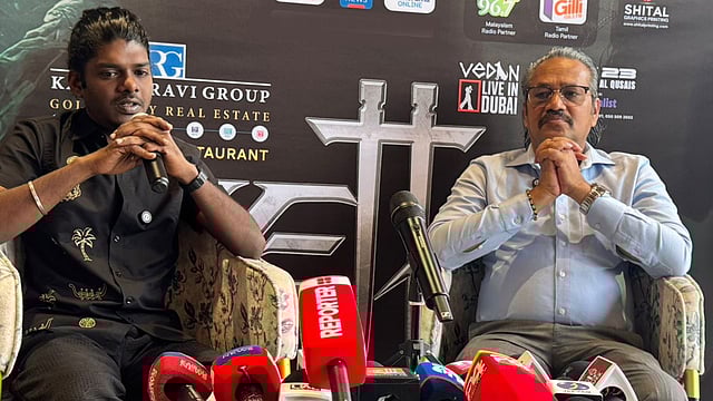 വേടൻ ദുബായിൽ നടത്തിയ വാർത്താസമ്മേളനത്തിൽ സംസാരിക്കുന്നു.
