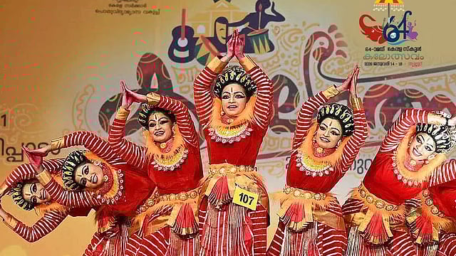 തൃശൂർ: തൃശൂരിൽ 64 ആമത് കൗമാര കലോത്സവത്തിന് തുടക്കം. 250 ഇനങ്ങളിൽ 15,000 കൗമാരപ്രതിഭകൾ 25 വേദികളിലായി അരങ്ങിലെത്തും. തേക്കിൻകാട് മൈതാനിയിലെ സൂര്യകാന്തി' എന്ന പ്രധാന വേദിയിലാണ് ഉദ്ഘാടനം.
