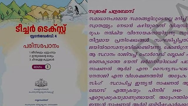 'സുഭാഷ് ചന്ദ്രബോസ് ഇന്ത്യ വിട്ടത് ബ്രിട്ടനെ ഭയന്ന്'; എസ്സിഇആര്ടിയുടെ കൈപ്പുസ്തകത്തിൽ ഗുരുതര പിഴവ്