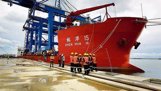 32 ക്രെയിനാണ് ആവശ്യമുള്ളത്. ഇതിൽ 24 യാർഡ് ക്രെയിനും എട്ട് ഷിപ്പ് ടു ഷോർ ക്രെയിനുമാണ്. ആറാം കപ്പലായ ഷെൻഹുവ 35 ക്രെയിനുകളിറക്കി ശനിയാഴ്ച ചൈനയിലേക്ക് തീരം വിട്ടു. അടുത്തമാസം ആദ്യം തുറമുഖം ട്രയൽ റണ്ണിലേക്ക് കടക്കും.