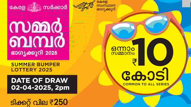 സമ്മർ ബമ്പർ നറുക്കെടുപ്പ് ഈ മാസം 28 ന് ഉച്ചയ്ക്ക് രണ്ടിന് തിരുവനന്തപുരം ഗോർഖി ഭവനിലെ നറുക്കെടുപ്പ് വേദിയിൽ നടത്തും. ഭാഗ്യശാലിക്ക് ഒന്നാം സമ്മാനമായി 10 കോടി രൂപയാണ് ലഭിക്കുക. ഒരു ലക്ഷം രൂപയുടെ അഞ്ച് സമാശ്വാസ സമ്മാനങ്ങളും ഉണ്ടാകും.