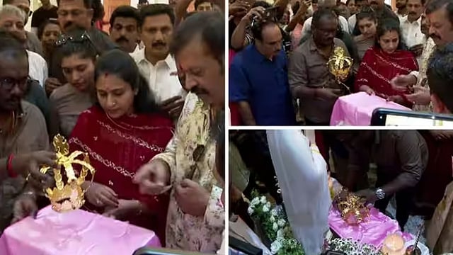 തൃശൂർ: ലൂർദ് കത്തീഡ്രൽ ദേവാലയത്തിൽ മാതാവിന്റെ രൂപത്തിൽ സ്വർണക്കീരിടം സമർപ്പിച്ച് ബിജെപി നേതാവും നടനുമായ സുരേഷ് ഗോപി. ഏകദേശം അഞ്ച് പവനോളം തൂക്കമുള്ള കീരിടമാണ് സമർപ്പിച്ചത്.
