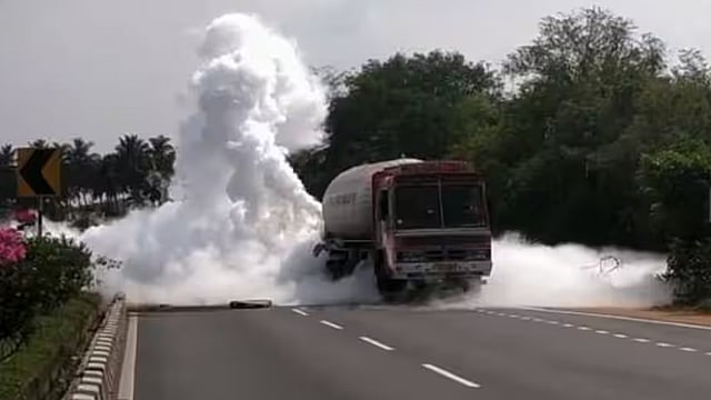 പാലക്കാട്: പാലക്കാട് വാളയാറിനു സമീപം ടാങ്കർ ലോറിയിൽ വാഹനമിടിച്ച് വാതക ചോർച്ച. കാർബൺ ഡൈ ഓക്സൈഡ് വാതകവുമായി പോവുകയായിരുന്ന ടാങ്കറിനു പിന്നിൽ മറ്റൊരു വാഹനം വന്നിടിച്ചതാണ് വാതക ചോർച്ചയ്ക്ക് കാരണം. കഞ്ചിക്കോട് നിന്ന് കോയമ്പത്തൂരിലേക്ക് പോവുകയായിരുന്ന ടാങ്കറാണ് അപകടത്തിൽപ്പെട്ടത്. നാല് ഫയർഫോഴ്സ് സംഭവസ്ഥലത്തെത്തി വാതകം പൂർണമായും നിർവീര്യമാക്കി.