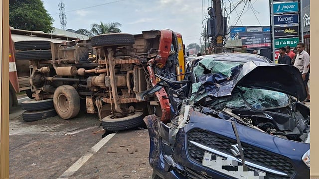 ലളിത തങ്കപ്പന്റെ നില ഗുരുതരമാണ്. ചങ്ങനാശേരി ഭാഗത്ത് നിന്ന് വന്ന ടിപ്പറും എതിർ ഭാഗത്തു നിന്ന് വന്ന മാരുതി സിഫ്റ്റ് കാറുമായി കൂട്ടിയിടിക്കുകയായിരുന്നു. തങ്കപ്പനായിരുന്നു കാർ ഓടിച്ചിരുന്നത്. അപകടത്തിൽ ടിപ്പർ ലോറി റോഡിന് കുറുകെ മറിഞ്ഞു.