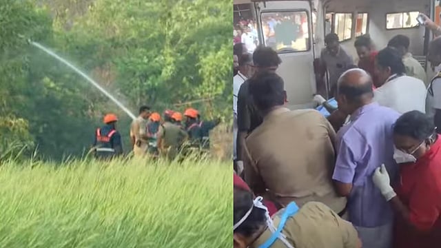വയലിലേക്ക് ചിന്നിച്ചിതറി ശരീരഭാഗങ്ങൾ; മണിക്കൂറുകൾ കഴിഞ്ഞിട്ടും അണയാതെ തീ