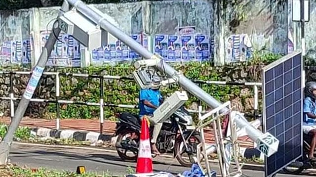 ടിപ്പർ പൊലീസ് കസ്റ്റഡിയിലെടുത്തിരിക്കുകയാണ്. ജൂൺ 5 മുതൽ ഗതാഗത നിയമ ലംഘനത്തിന് പിഴ ചുമത്താനിരിക്കെയാണ് പോസ്റ്റു ഒടിഞ്ഞു വീണത്.
