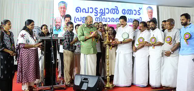 കളമശേരി നഗരസഭയിലെ പൊട്ടച്ചാൽ തോട് പ്രളയ നിവാരണ പദ്ധതിയുടെ നിർമാണോദ്ഘാടനം ജലവിഭവ വകുപ്പ് മന്ത്രി റോഷി അഗസ്റ്റിൻ നിർവഹിക്കുന്നു.