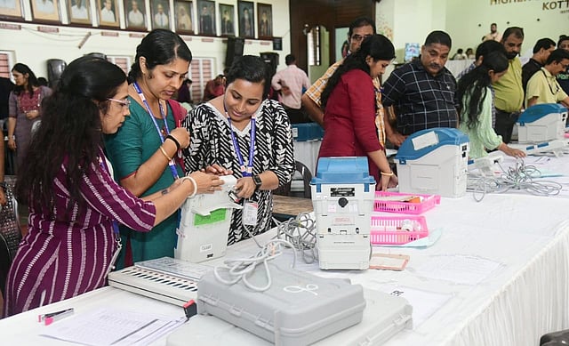 കോട്ടയം: ലോക്സഭാ തെരഞ്ഞെടുപ്പിൽ ഉപയോഗിക്കുന്നതിനുള്ള ഇലക്ട്രോണിക് വോട്ടിങ് യന്ത്രങ്ങൾ സജ്ജമായി. പിറവം നിയമസഭ നിയോജകമണ്ഡലം ഒഴികെയുള്ള കോട്ടയം ലോക്സഭാ മണ്ഡലത്തിലെ സ്വീകരണ/വിതരണ കേന്ദ്രങ്ങളിൽ ഇലക്ട്രോണിക് വോട്ടിങ് യന്ത്രങ്ങളുടെ കമ്മീഷനിങ് പൂർത്തിയായി. എറണാകുളം ജില്ലയിലുൾപ്പെടുന്ന പിറവത്തെ വോട്ടിങ് മെഷീനുകളുടെ രണ്ടാംഘട്ട റാൻഡമൈസേഷൻ നടപടികൾ ബുധനാഴ്ചയാണ് പൂർത്തിയായത്.