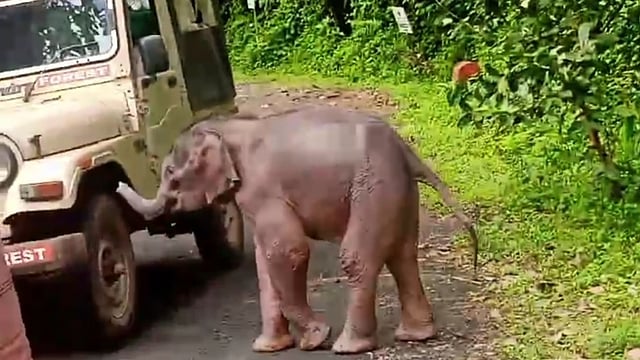 നാട്ടിലും റോഡിലും കുറുമ്പുമായി കാട്ടാനക്കുട്ടി | Video
