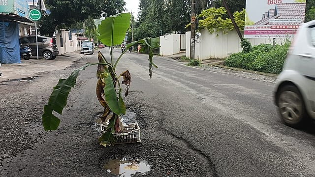 വഴി നിറയെ കുഴി; ഗുരുവായൂർ- പൊന്നാനി സംസ്ഥാന പാതയില് വാഴ നട്ട് നാട്ടുകാർ