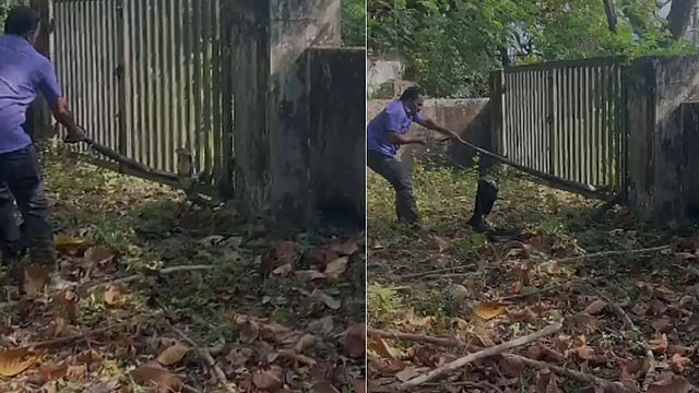 ഇറിഗേഷൻ ഓഫിസിൽ 15 അടി നീളമുള്ള രാജവെമ്പാല; പിടി കൂടി വനത്തിൽ വിട്ടു