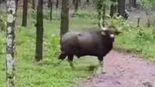 റബ്ബർ തോട്ടത്തിൽ കണ്ട കാട്ടുപോത്തിനെ നാട്ടുകാരും വനപാലകരും ചേർന്ന് കാട്ടിലേക്ക് തുരത്തിയിട്ടുണ്ട്.