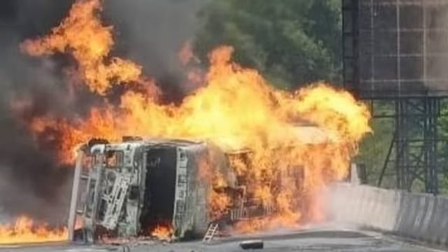 നിയന്ത്രണം വിട്ട ടാങ്കർ ഡിവൈഡറിൽ ഇടിച്ചു മറിയുകയായിരുന്നു. തുടർന്ന് പൂർണമായും കത്തിനശിച്ചു.