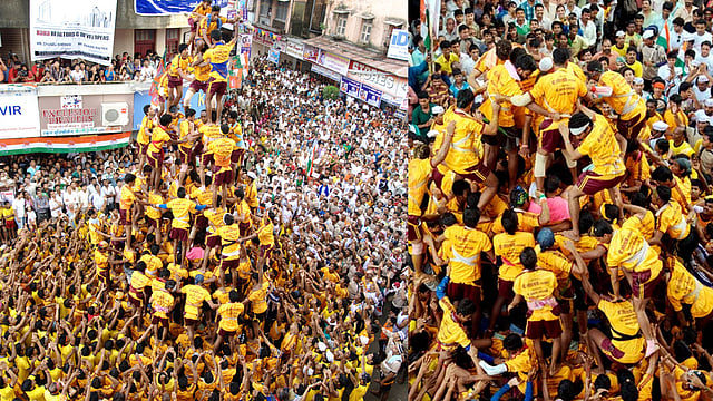 ഇതിനിടയിലാണ് മുകളിൽ നിന്നും ചിലർ നിലം പതിച്ചത്. ദഹി ഹണ്ടികൾ തകർക്കുന്നതിൽ വിജയിക്കുന്ന ഗ്രൂപ്പുകൾക്ക് വലിയ തുകയാണ് പലയിടത്തും സമ്മാനമായി നൽകി വരുന്നത്.