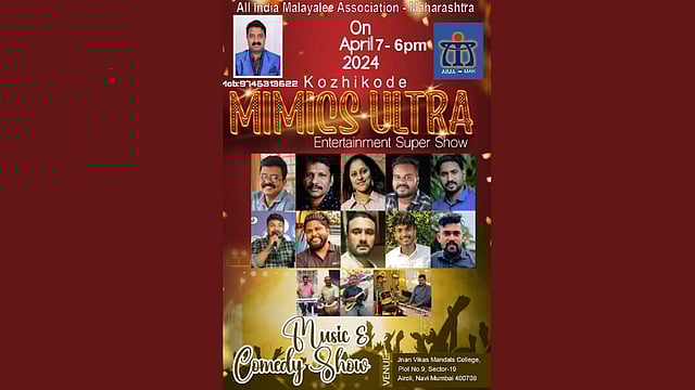 നവിമുംബൈ: എയ്മ മഹാരാഷ്ട്രയുടെ ഹാസ്യ സംഗീത വിരുന്ന് ഏപ്രിൽ 7ന് ഞായറാഴ്ച വൈകുന്നേരം 6 മണി മുതൽ നവി മുംബൈയിലെ സെക്ടർ-19, ഐരോളി ജ്ഞാൻ വികാസ് മണ്ഡൽ കോളേജ് ഓഡിറ്റോറിയത്തിലാണ് പരിപാടി അരങ്ങേറുക. എയ്മയുടെ ധനശേഖരണാർത്ഥം നടത്തുന്ന കലാവിരുന്ന് എയ്മയിൽ അഫിലിയേറ്റ് ചെയ്ത മലയാളി സംഘടനകളുടെ സഹകരണത്തോടെയാണ് സംഘടിപ്പിക്കുന്നത്.