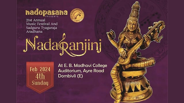 താനെ : നാദോപാസനയുടെ 21-മത് വാർഷികവുമായി ബന്ധപ്പെട്ട് സംഗീത ആസ്വാദകർക്കായി ഭക്തി ഗാനങ്ങളുമായി നാദ രഞ്ജിനി അവതരിപ്പിക്കുന്നു.