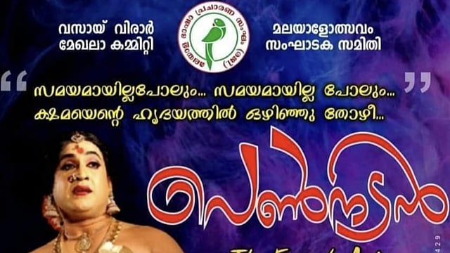 മുംബൈ: പ്രശസ്ത സിനിമാ-നാടക നടൻ സന്തോഷ് കീഴാറ്റൂരിന്റെ പ്രസിദ്ധമായ ഒറ്റയാൾ നാടകം പെൺനടൻ വസായിൽ അരങ്ങേറുന്നു. ജനുവരി 28 ഞായറാഴ്ച രാത്രി ഏഴര മണിക്ക് വസായ് വെസ്റ്റ് മാണിക്ക്പൂരിലെ ബികെഎസ് സ്കൂൾ ഓഡിറ്റോറിയത്തിലാണ് നാടകം അവതരിപ്പിയ്ക്കുന്നത്. ഏറെ അഭിനന്ദനങ്ങൾ ഏറ്റുവാങ്ങിയ നാടകം മുംബൈയുടെ പശ്ചിമ മേഖലയിൽ ആദ്യമായാണ് അവതരിപ്പിക്കപ്പെടുന്നത്.