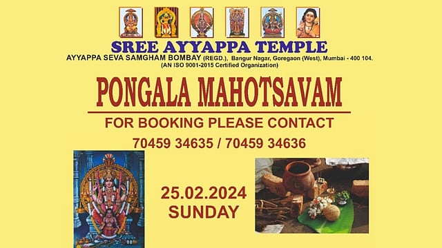 മുംബൈ: ഗോരേഗാവ് ബങ്കൂർനഗർ ശ്രീ അയ്യപ്പക്ഷേത്രത്തിൽ ഫെബ്രുവരി 25 ഞായറാഴ്ച പൊങ്കാല മഹോത്സവം. നടത്തപ്പെടുന്നു.