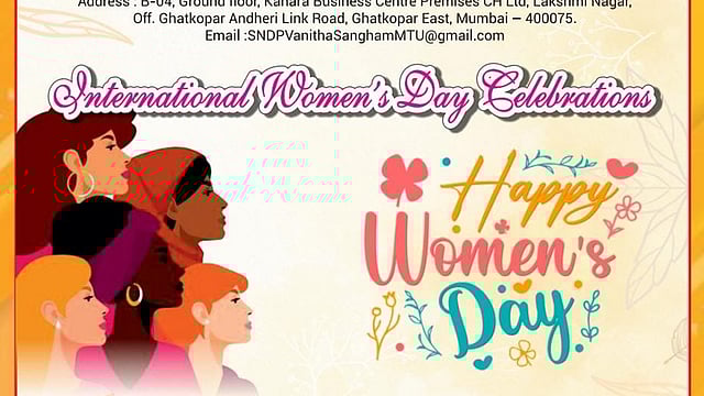 മുംബൈ:ശ്രീനാരായണ ധർമ്മ പരിപാലന യോഗം വനിതാ സംഘം മുംബൈ-താനെ യൂണിയൻ അന്താരാഷ്ട്ര വനിതാ ദിനം മാർച്ച് 10-ന് ഞായറാഴ്ച രാവിലെ 9.30 മണി മുതൽ ഗോരഗാവ് വെസ്റ്റിലെ ബംങ്കൂർ നഗർ ശ്രി അയ്യപ്പ ക്ഷേത്ര ഹാളിൽ വെച്ച് വനിതാ സംഘം യുണിയൻ പ്രസിഡന്റ് സുമ രഞ്ജിത്തിന്റെ അധ്യക്ഷതയിൽ ആഘോഷിക്കുന്നു. സ്ത്രീ ശാക്തികരണത്തിന്റെ ഭാഗമായ ഒരു വലിയ ദിനമാണ് അന്താരാഷ്ട്ര വനിതാ ദിനം. വിദ്യഭ്യാസം,ആരോഗ്യം, തൊഴിൽ,സമൂഹം, സംഘടന,കുടുംബം തുടങ്ങിയ കാര്യങ്ങളിൽ വനിതകൾ നേടിയ വിജയത്തിന്റെ ഓർമ്മപ്പെടുത്തലാണ് ഈ ദിനം. ലോകത്തിലെ എല്ലാ വനിതകൾക്കുമായി ഒരു ദിനമെന്ന ആശയത്തിൽ നിന്നാണ് വനിതാ ദിനാചരണം ഉരുത്തിരിഞ്ഞത്. സമൂഹത്തിലെ പാർശ്വവൽക്കരിക്കപ്പെട്ട സ്ത്രീകളുടെ ശാരീരികവും, മാനസികവും, സാമൂഹികവുമായ ശാക്തീകരണം ഇതിന്റെ ഭാഗമാണ്.