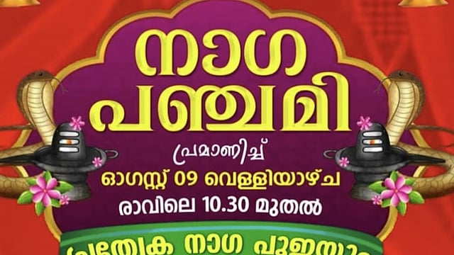 താനെ: താനെ വാഗ്ലെ എസ്റ്റേറ്റ് ശ്രീനഗർ ശബരിഗിരി അയ്യപ്പ ക്ഷേത്രത്തിൽ നാഗപഞ്ചമി ദിനമായ ഓഗസ്റ്റ് 9 ന് (വെള്ളിയാഴ്ച്ച)വിശേഷാൽ പൂജകൾ നടത്തപ്പെടുന്നു. അന്നേ ദിവസം രാവിലെ 10.30 മുതൽ നാഗ പൂജ, നൂറും പാലും, വിവിധ അഭിഷേകങ്ങൾ, പ്രത്യക പൂജകൾ എന്നിവ നടത്തപ്പെടുമെന്നും ഭാരവാഹികൾ അറിയിച്ചു.