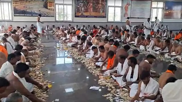 ബംഗളൂരു: ക്ഷേത്രത്തിന്റെ വലിയൊരു മുറിയിൽ നിരന്നിരുന്ന പുരോഹിതന്മാർ പണമെണ്ണുന്ന വീഡിയോയാണിപ്പോൽ സമൂഹമാധ്യമങ്ങളിൽ കത്തിപ്പടരുന്നത്. ഒന്നും രണ്ടുമല്ല 3 കോടിയിലധികം രൂപയാണ് പൂജാരികൾ എല്ലാവരും ചേർന്ന് എണ്ണി തിട്ടപ്പെടുത്തിയത്. കർണാടകയിലെ രാഘവേന്ദ്ര സ്വാമി മഠത്തിലാണ് സംഭവം. 100 കണക്കിന് പുരോഹിതന്മാൻ ഒന്നിച്ചിരുന്നാണ് മഠത്തിലേക്കെത്തിയ വരവ് എണ്ണിത്തിട്ടപ്പെടുത്തിയത്.