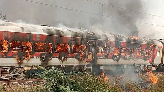 യാത്രക്കാരിലൊരാളുടെ തലമുടിക്ക് തീപിടിച്ചെങ്കിലും ഉടന് തന്നെ രക്ഷപ്പെടുത്തുകയായിരുന്നു. സംഭവം നടന്നതിന് പിന്നാലെ സമാന്തരമായ ട്രാക്കിലൂടെ വന്ന ദൂര്ഗമി എക്സ്പ്രസ് നിര്ത്തിയശേഷം തീപിടിച്ച ട്രെയിനിലുണ്ടായിരുന്ന യാത്രക്കാരെ അതിലേക്ക് മാറ്റുകയായിരുന്നു.