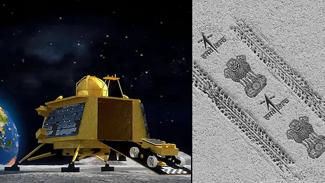 ഇന്ത്യയുടെ ദേശീയ ചിഹ്നമായ അശോക സ്തംഭവും ഐഎസ്ആര്ഒയുടെ ലോഗോയും ചന്ദ്രോപരിതലത്തില് പതിപ്പിച്ചാണ് റോവർ നീങ്ങുന്നത്. ചന്ദ്രയാനിലെ പ്രജ്ഞാൻ റോവറിന്റെ ചക്രങ്ങള് ചന്ദ്രനില് പതിച്ചതോടെയാണ് ഇന്ത്യയുടെ അഭിമാനം വാനോളമുയര്ത്തി അശോക സ്തംഭവും ഐഎസ്ആര്ഒയുടെ പേരും പതിഞ്ഞത്.