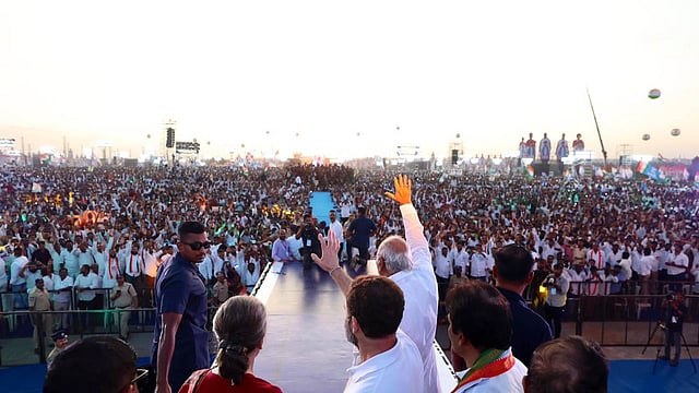 ഹൈദരാബാദ്: തെലങ്കാന സ്വന്തമാക്കാനായി കച്ച കെട്ടിയിറങ്ങി കോൺഗ്രസ്. തെരഞ്ഞെടുപ്പിനു മുന്നോടിയായി ആറ് വാഗ്ദാനങ്ങളായി കോൺഗ്രസ് നേതാവ് സോണിയാ ഗാന്ധി തെലങ്കാനയ്ക്ക് നൽകിയിരിക്കുന്നത്.ഹൈദരാബാദിനു സമീപം തുക്കുഗുഡയിൽ നടന്ന റാലിയിലാണ് സോണിയ വാഗ്ദാനങ്ങൾ നൽകിയത്.