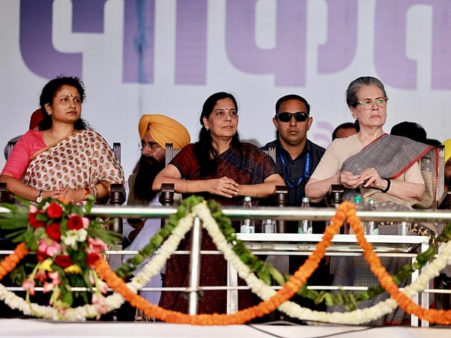 ന്യൂഡൽഹി: മോദി സർക്കാരിനെതിരെ ഇന്ത്യ സഖ്യം പ്രഖ്യാപിച്ച മഹാറാലിയിൽ അണിനിരന്ന് 28 പ്രതിപക്ഷ പാർട്ടികൾ. കോൺഗ്രസ് നേതാക്കളായ രാഹുൽഗാന്ധി, പ്രിയങ്ക ഗാന്ധി, സിപിഎം ജനറൽ സെക്രട്ടറി സീതാറാം യെച്ചൂരി, അഖിലേഷ് യാദവ് അടക്കം പ്രധാന നേതാക്കളെല്ലാം രാം ലീല മൈതാനത്തിൽ നടക്കുന്ന മഹാറാലിയിൽ അണിചേരും. ഇവർക്കൊപ്പം കെജ്രിവാളിന്റെ ഭാര്യ സുനിത കെജ്രിവാളും ഹേമന്ത് സോമന്റെ ഭാര്യ കൽപ്പനയും വേദിയിൽ എത്തും.