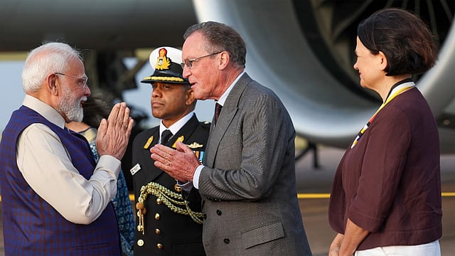 ഇന്ത്യൻ പ്രധാനമന്ത്രി നരേന്ദ്ര മോദിയെ ബ്രിട്ടിഷ് പ്രധാനമന്ത്രി കിയർ സ്റ്റാമർ സ്വീകരിക്കുന്നു.
