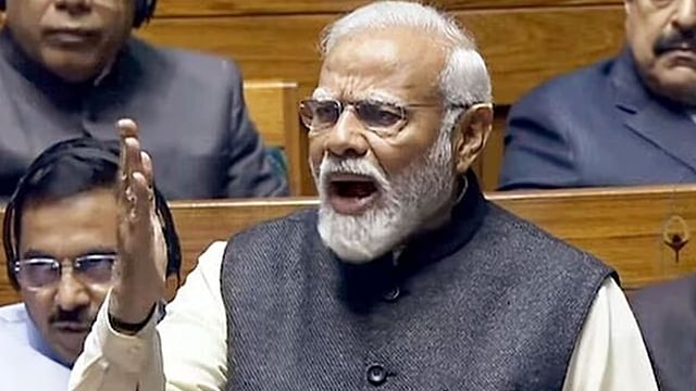 പ്രതിപക്ഷത്തെ തുടർച്ചയായി പരിഹസിച്ചകൊണ്ടായിരുന്നു മോദിയുടെ പ്രസംഗം. ദീർഘകാലം പ്രതിപക്ഷത്ത് തുടരാനുള്ള നിങ്ങളുടെ ദൃഢനിശ്ചയത്തെ അഭിനന്ദിക്കുന്നു. പൊതുജനങ്ങൾ നിങ്ങളെ തീർച്ചയായും അനുഗ്രഹിക്കും. പ്രതിപക്ഷത്തിന് തെരഞ്ഞെടുപ്പിൽ മത്സരിക്കാനുള്ള ധൈര്യം നഷ്ടമായി. സീറ്റുകൾ മാറാനാണു പലരുടെയും ശ്രമം. പലരും രാജ്യസഭയിലേക്കു കളം മാറ്റാൻ ശ്രമിക്കുന്നു. കോണ്ഗ്രസ് എന്ന കടയ്ക്ക് പൂട്ടുവീണു. കുടുംബാധിപത്യം കോണ്ഗ്രസിനെ നശിപ്പിച്ചു. പരാജയപ്പെട്ട ഉത്പന്നത്തെ വീണ്ടും വീണ്ടും പരീക്ഷിക്കുകയാണെന്നും മോദി പരിഹസിച്ചു.