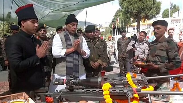ന്യൂഡൽഹി: വിജയ ദശമി ദിനത്തിൽ അരുണാചൽ പ്രദേശിലെ തവാങ്ങിൽ സൈനികർക്കൊപ്പം ശസ്ത്രപൂജ നടത്തി പ്രതിരോധ മന്ത്രി രാജ്നാഥ് സിങ്. മുൻ എൻഡിഎ സർക്കാരിന്റെ കാലത്ത് ആഭ്യന്തര മന്ത്രിയായിരുന്നപ്പോൾ മുതൽ കുറച്ചു വർഷങ്ങളായി രാജ്നാഥ് തവാങ്ങിലെത്തി ശസ്ത്ര പൂജ നടത്താറുണ്ട്. ഇന്ത്യ- ചൈന അതിർത്തി തർക്കം പ്രദേശത്ത് കഴിഞ്ഞ മൂന്നു വർഷങ്ങളായി രൂക്ഷമാണ്. 3500 കിലോമീറ്റർ ദൂരമുള്ള അതിർത്തിയിൽ ഇന്ത്യ സൈനിക സംഘത്തെ വിന്യസിച്ചിട്ടുണ്ട്.